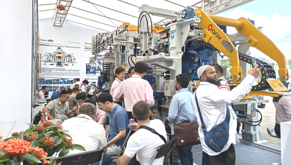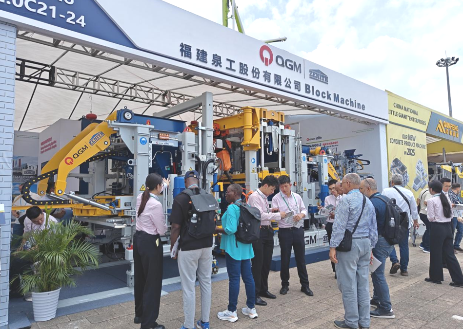 На овој кантонски саем, Quangong Co., Ltd. ги прикажа своите најнови машини за тули кои не се печени и опрема за производствена линија за бетонски блокови. Штандот привлече големи толпи, а аголната површина за прикажување на бетонски блок ги привлекува глобалните купувачи да застанат и да се распрашуваат - со производство без печка, ниска потрошувачка на енергија и еколошка одржливост. Изложбата за интелигентна линија за производство на тули од серијата ZN, исто така, привлече значително внимание. QuanGong интегрираше далечинско работење и одржување со дијагностика на облак во својата опрема за правење тули, овозможувајќи им на корисниците да добијат подлабок увид во најновите достигнувања на компанијата во рециклирањето на ресурсите на цврст отпад и технологијата за производство на тули со ниска содржина на јаглерод.